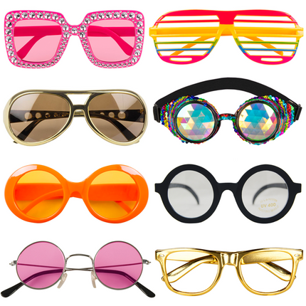 2. Feestbrillen: maak een fashion statement met onze feestbrillen. Of je nu kiest voor glitter, neonkleuren of unieke vormen, ze voegen een speels element toe aan je outfit.