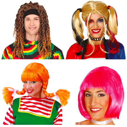 7. Pruiken: een pruik kan je meteen transformeren in een ander personage. Ons assortiment omvat verschillende stijlen, kleuren en lengtes, zodat je precies de juiste pruik kunt kiezen om je look af te maken.