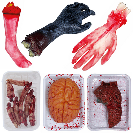 Wat betreft nep dieren, zoals ratten, slangen en vogels, deze voegen een extra laag toe aan je decor door een onverwacht element van verrassing te bieden. Verspreid ze door de kamer of verstop ze op plaatsen om nietsvermoedende gasten de stuipen op het lijf te jagen. Pompoenen zijn onmisbaar tijdens Halloween en in onze collectie vind je ze in alle soorten en maten. Of je nu kiest voor traditionele oranje exemplaren of zwarte en witte voor een modernere touch, ze zijn perfect voor zowel carving als decoratie. Onze nep lichaamsdelen, enge poppen, skeletten en schedels bieden een breed scala aan mogelijkheden om griezelige scènes te creëren. Van een geamputeerde hand die uit een lade steekt tot een angstaanjagende pop die in een donkere hoek zit, deze items zijn geweldig voor die extra schrikeffect.