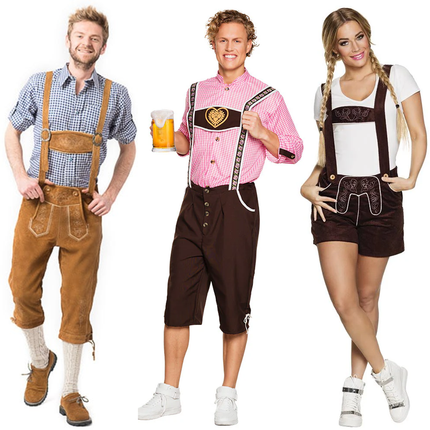 Voor kleding biedt Partywinkel een van de meest iconische kledingstukken van het Oktoberfest, namelijk het Dirndl jurkje. Deze traditionele jurken, vaak versierd met prachtige details en patronen, geven een vrouwelijke en elegante uitstraling. Bij Partywinkel hebben we een ruime keuze aan Dirndl jurkjes in verschillende kleuren en lengtes, zodat je er op je best uitziet tijdens het Oktoberfest. Of je nu gaat voor een klassiek ontwerp of een moderne twist, onze collectie van Oktoberfest kleding zal zeker aan jouw wensen voldoen. Mannen kunnen kiezen uit onze collectie lederhosen, die van essentieel belang zijn voor elke Oktoberfest-garderobe. Deze broeken, vaak versierd met verfijnd borduurwerk, zijn beschikbaar in diverse kwaliteiten leer. Om deze outfits compleet te maken, hebben we ook een verscheidenheid aan bijpassende blouses, comfortabele kousen en sokken.