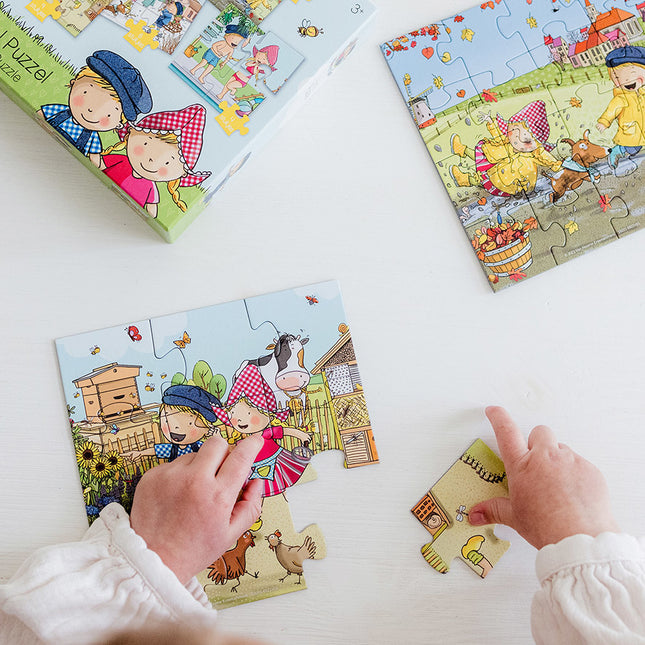 Puzzels met grote knoppen: deze zijn gemakkelijk vast te pakken en helpen bij de ontwikkeling van fijne motoriek.