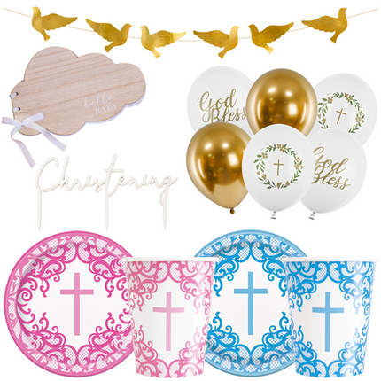 Doopfeest: een doopfeest is een speciaal moment voor families om samen te komen en een nieuwe levensfase te vieren. Voor deze gelegenheid bieden we passende decoraties zoals ballonnen die de ruimte luchtig en feestelijk maken. Onze tafeldecoratie, waaronder borden, bekers en servetten, zorgt ervoor dat het samenzijn zowel mooi als praktisch is.