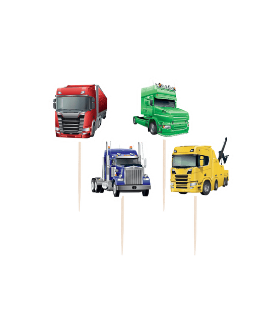 Voor de feesttafel hebben we cocktailprikkers die niet alleen praktisch zijn bij het serveren van hapjes, maar ook een element van plezier toevoegen met hun kleine vrachtwagenfiguren bovenop. Deze kleine maar significante details zijn wat een Partywinkel-feest uniek maken, en ze helpen om het vrachtwagenthema door te voeren in elk aspect van de decoratie.