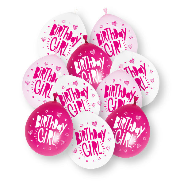 Deze Birthday Girl latex ballonnen zijn perfect om een verjaardag feestelijk te versieren. De roze-witte kleuren maken ze ideaal voor een meisjesverjaardag.