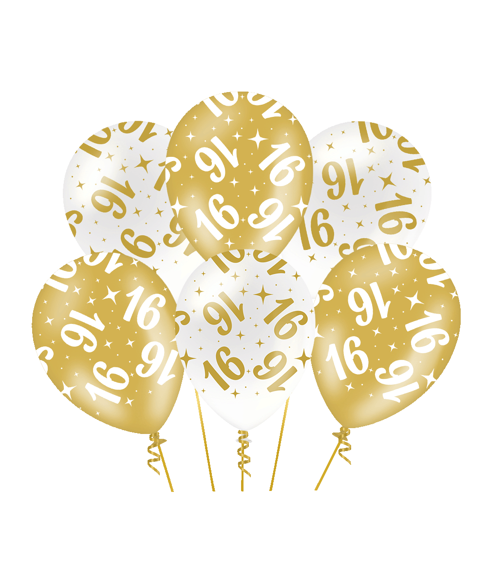 De Fancy Party Balloons - 16 van Paper Dreams zijn een stijlvolle toevoeging voor elk feest. Deze goud/witte ballonnen met opdruk "16" zijn gemaakt van hoogwaardig latex en hebben door hun luxe uitstraling een echte blikvangerstatus.