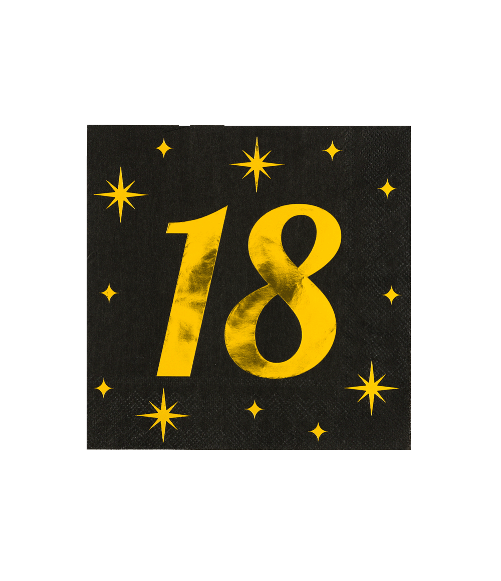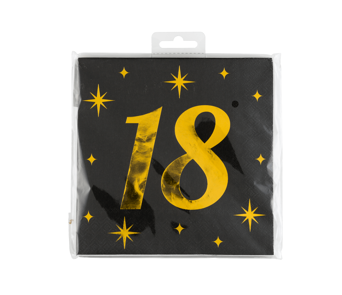18 Jaar Servetten Zwart Goud 19cm 16st