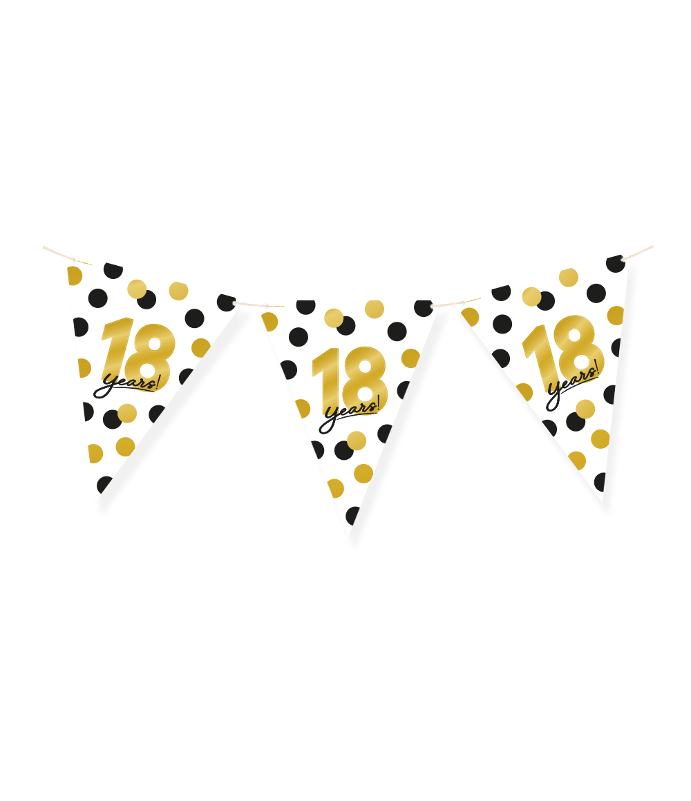 De Celebration! paper flags - 18 zijn de perfecte vlaggetjes om een feestje voor een 18-jarige op te leuken! Deze vlaggenlijn valt op door zijn onderscheidende design en omdat de vlaggetjes gemaakt zijn van papier denk je ook nog eens aan het milieu! De paper flags zijn 6 meter lang. Combineer ze met de bijpassende celebration! balloons!