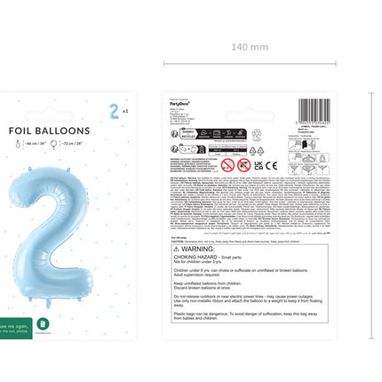 2 Jaar Cijfer Ballon Lichtblauw Leeg 72cm