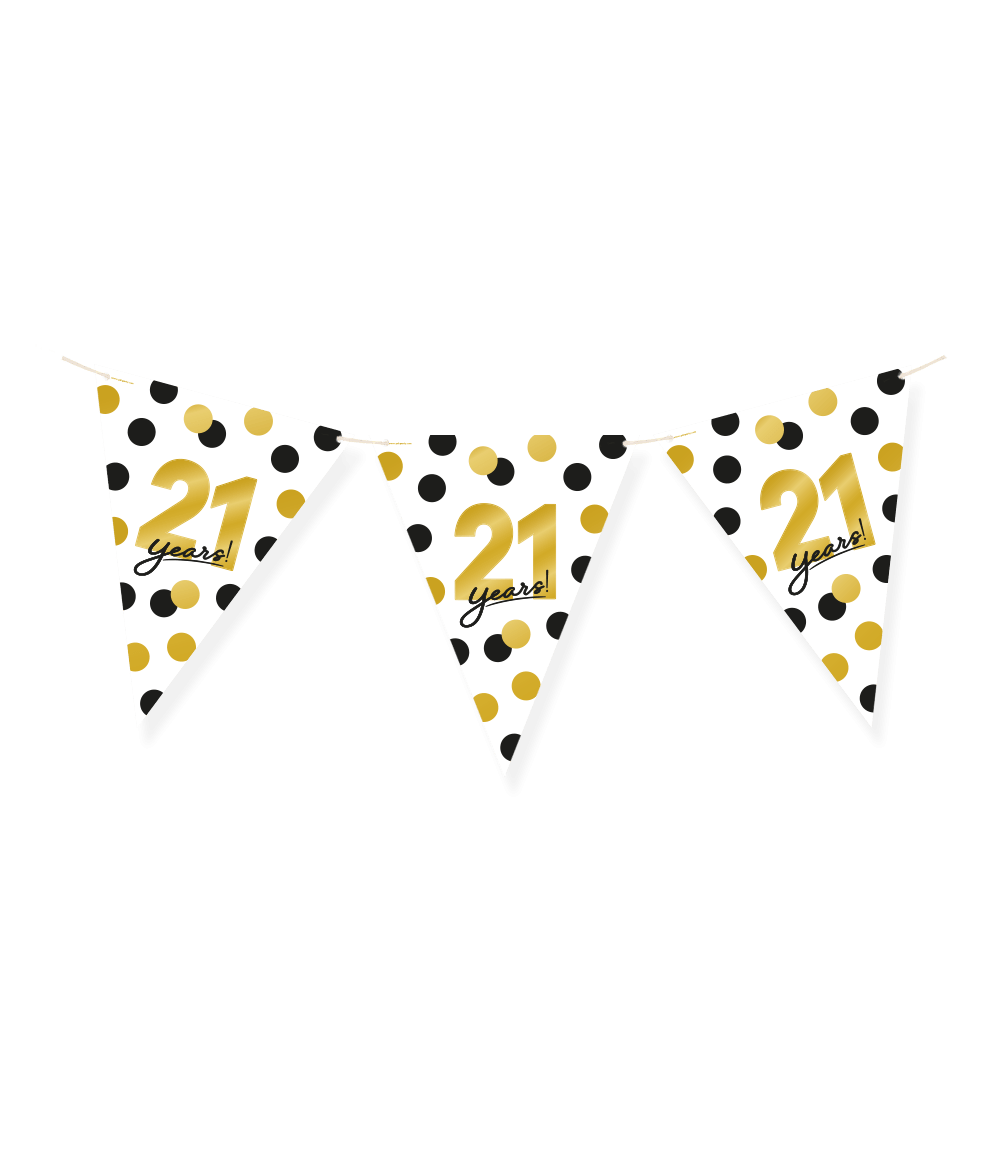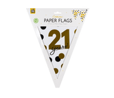 De Celebration! paper flags - 21 zijn de perfecte vlaggetjes om een feestje voor een 21-jarige op te leuken! Deze vlaggenlijn valt op door zijn onderscheidende design en omdat de vlaggetjes gemaakt zijn van papier denk je ook nog eens aan het milieu! De paper flags zijn 6 meter lang. Combineer ze met de bijpassende celebration! balloons!