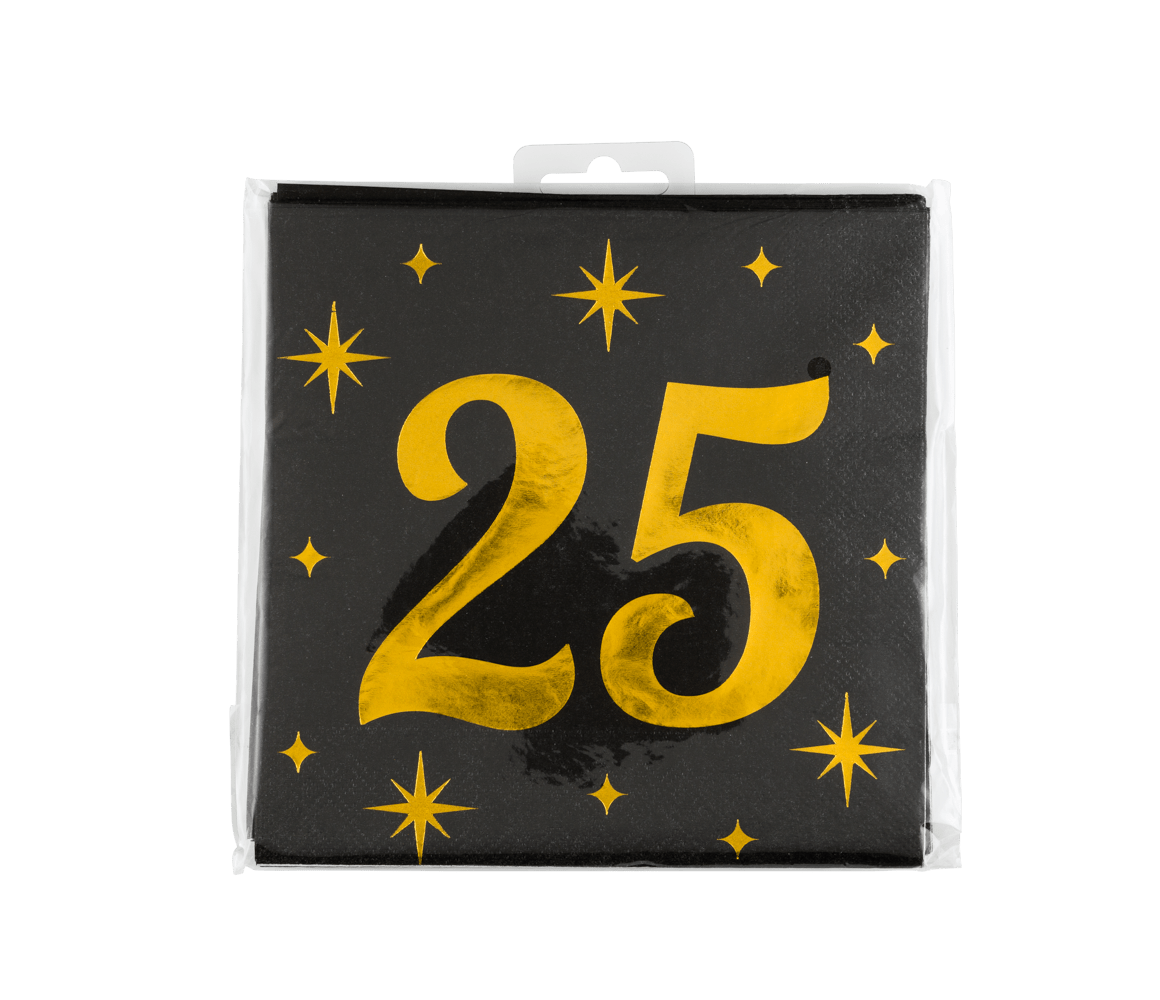 25 Jaar Servetten Zwart Goud 19cm 16st