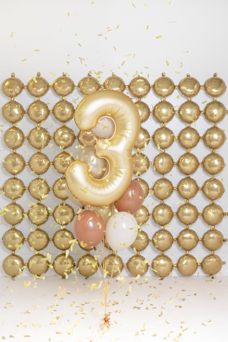 3 Jaar Cijfer Ballon Goud Satijn Folie Leeg 86cm