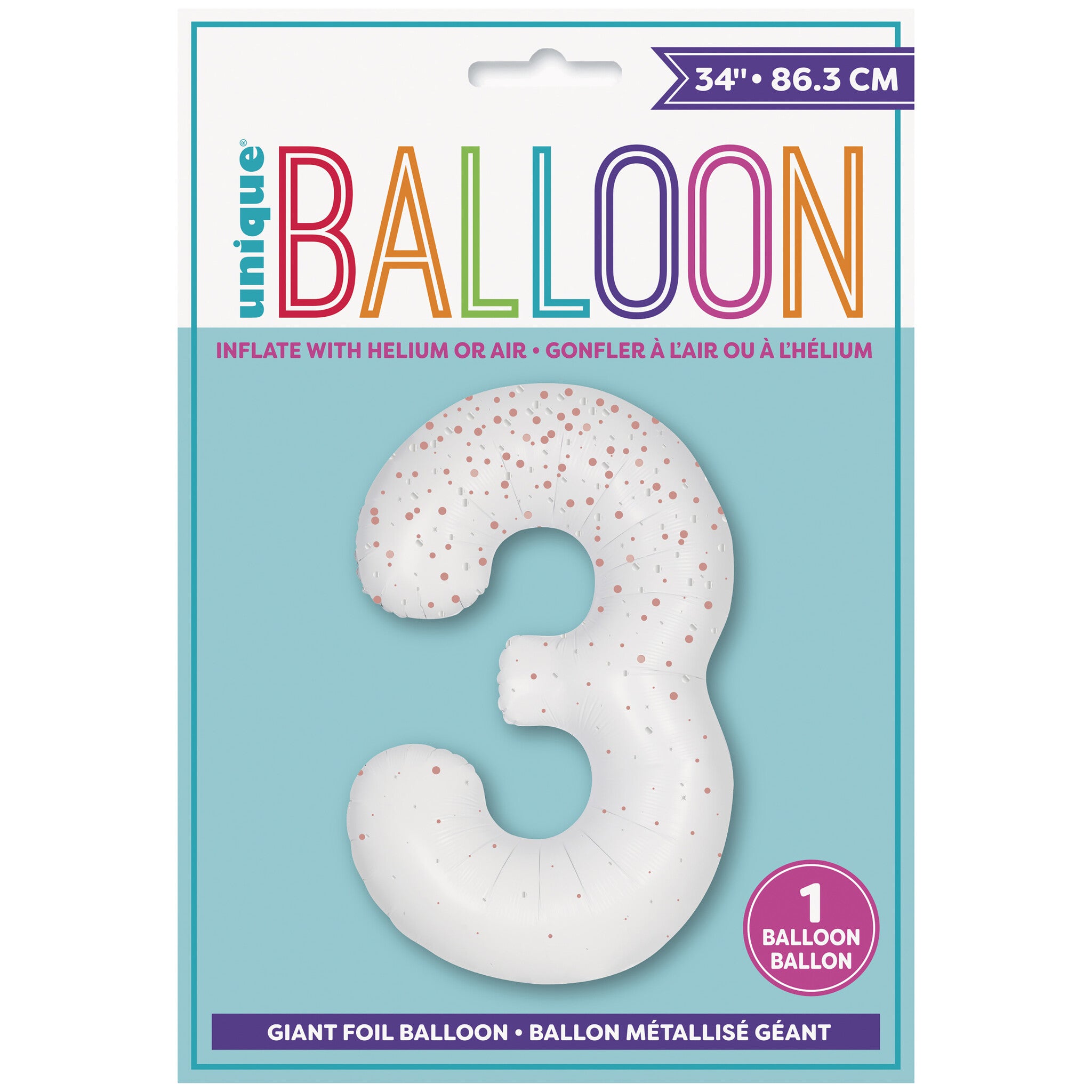 3 Jaar Cijfer Ballon Wit Stippen 86cm