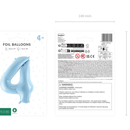 4 Jaar Cijfer Ballon Lichtblauw Leeg 72cm