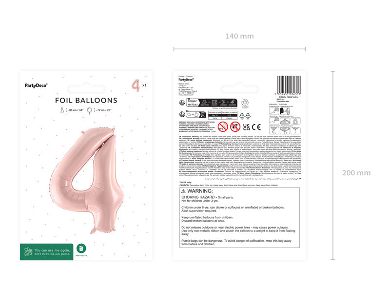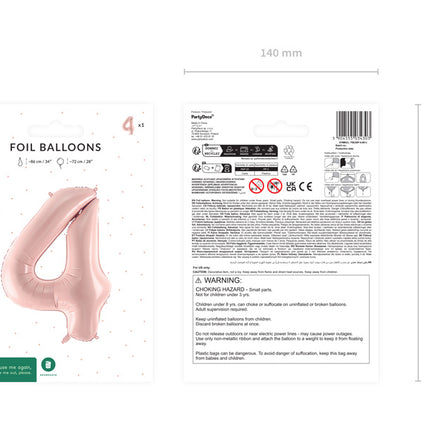 4 Jaar Cijfer Ballon Lichtroze Leeg 72cm
