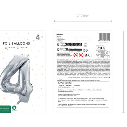4 Jaar Cijfer Ballon Zilver Leeg 72cm