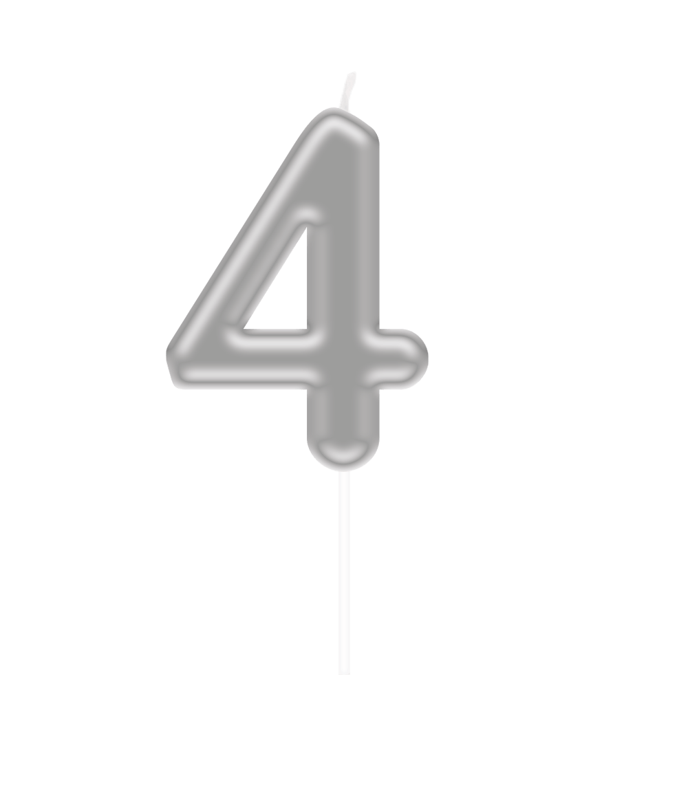 Vier elke mijlpaal stijlvol met deze zilveren cijferkaars “4”. Perfect voor het aangeven van leeftijden, jubileumgetallen of andere speciale gelegenheden. De glanzende zilveren kleur zorgt ervoor dat de kaars extra opvalt op elke taart of cupcake.