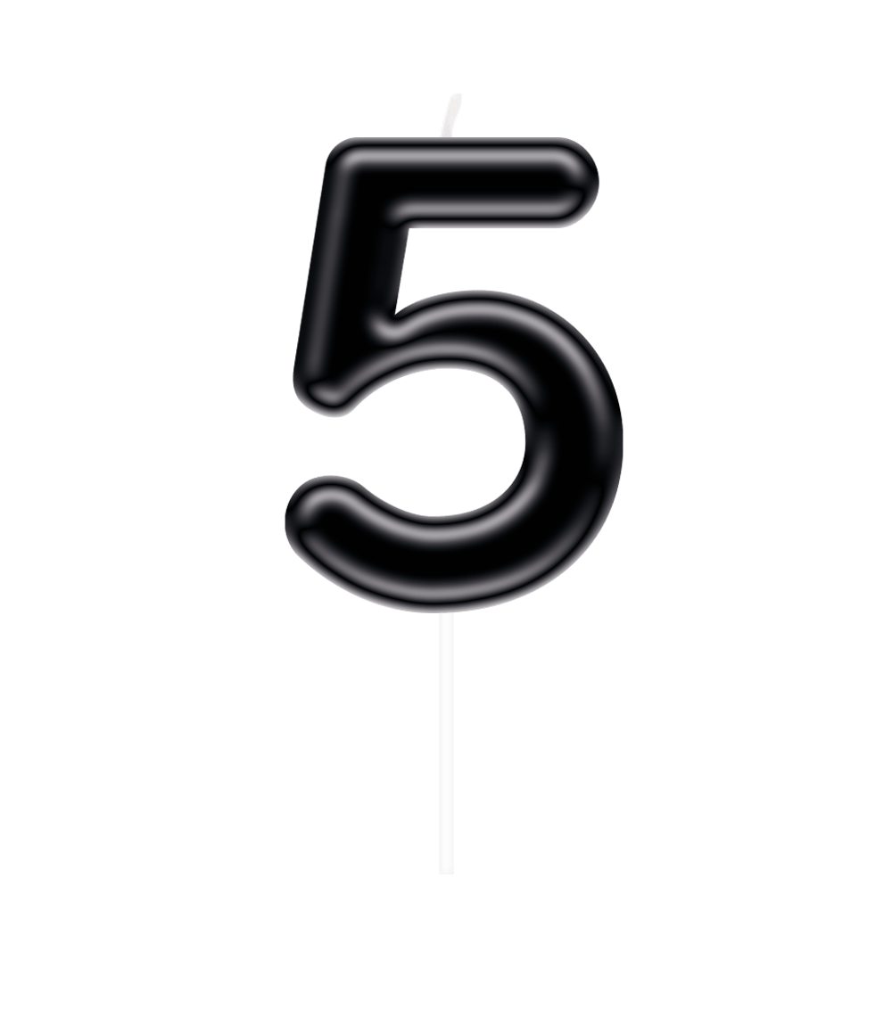 Vier elke mijlpaal stijlvol met deze zwarte cijferkaars “5”. Perfect voor het aangeven van leeftijden, jubileumgetallen of andere speciale gelegenheden. De zwarte kleur zorgt ervoor dat de kaars extra opvalt op elke taart of cupcake.