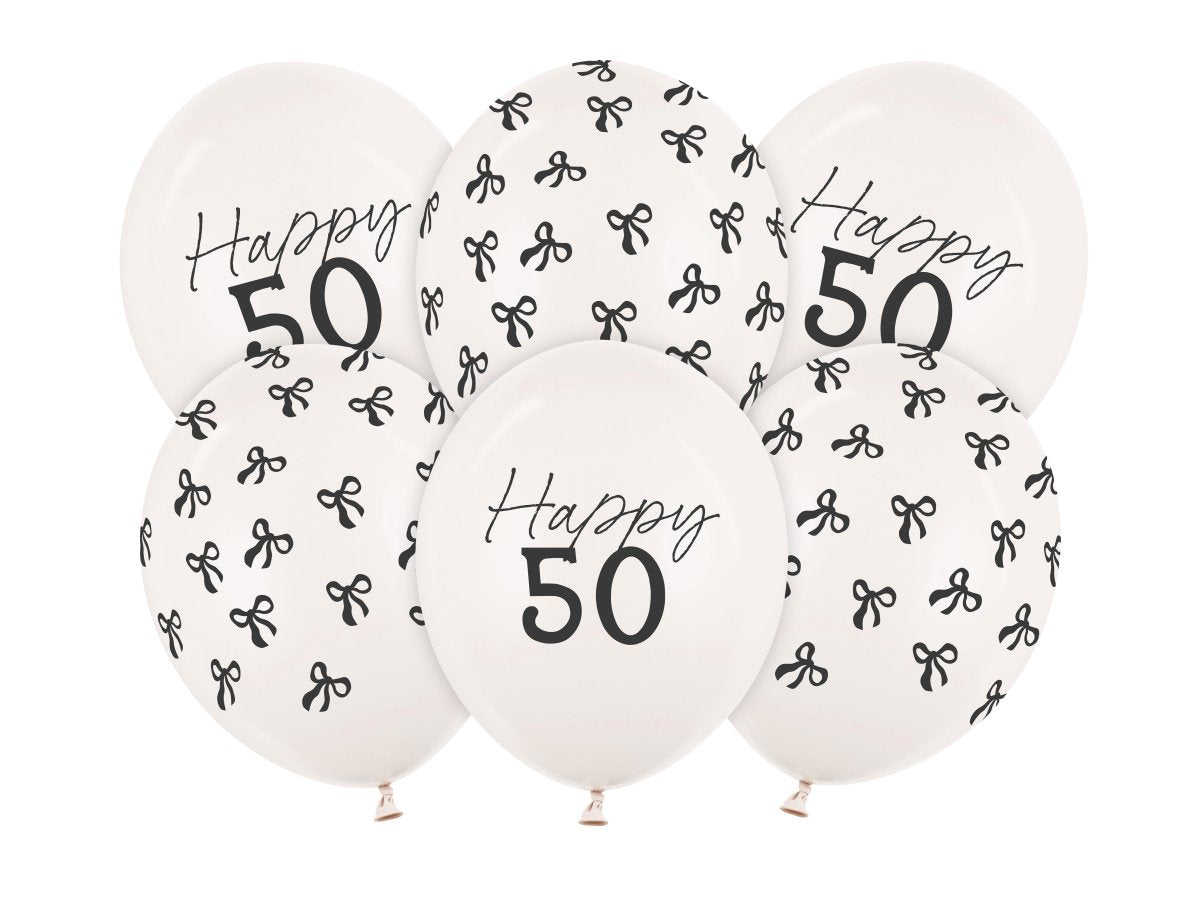 50 Jaar Ballonnen Zwart Wit Strik 30cm 6st