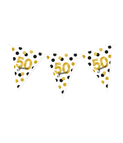 De Celebration! paper flags - 50 zijn de perfecte vlaggetjes om een feestje voor een 50-jarige op te leuken! Deze vlaggenlijn valt op door zijn onderscheidende design en omdat de vlaggetjes gemaakt zijn van papier denk je ook nog eens aan het milieu! De paper flags zijn 6 meter lang. Combineer ze met de bijpassende celebration! balloons!