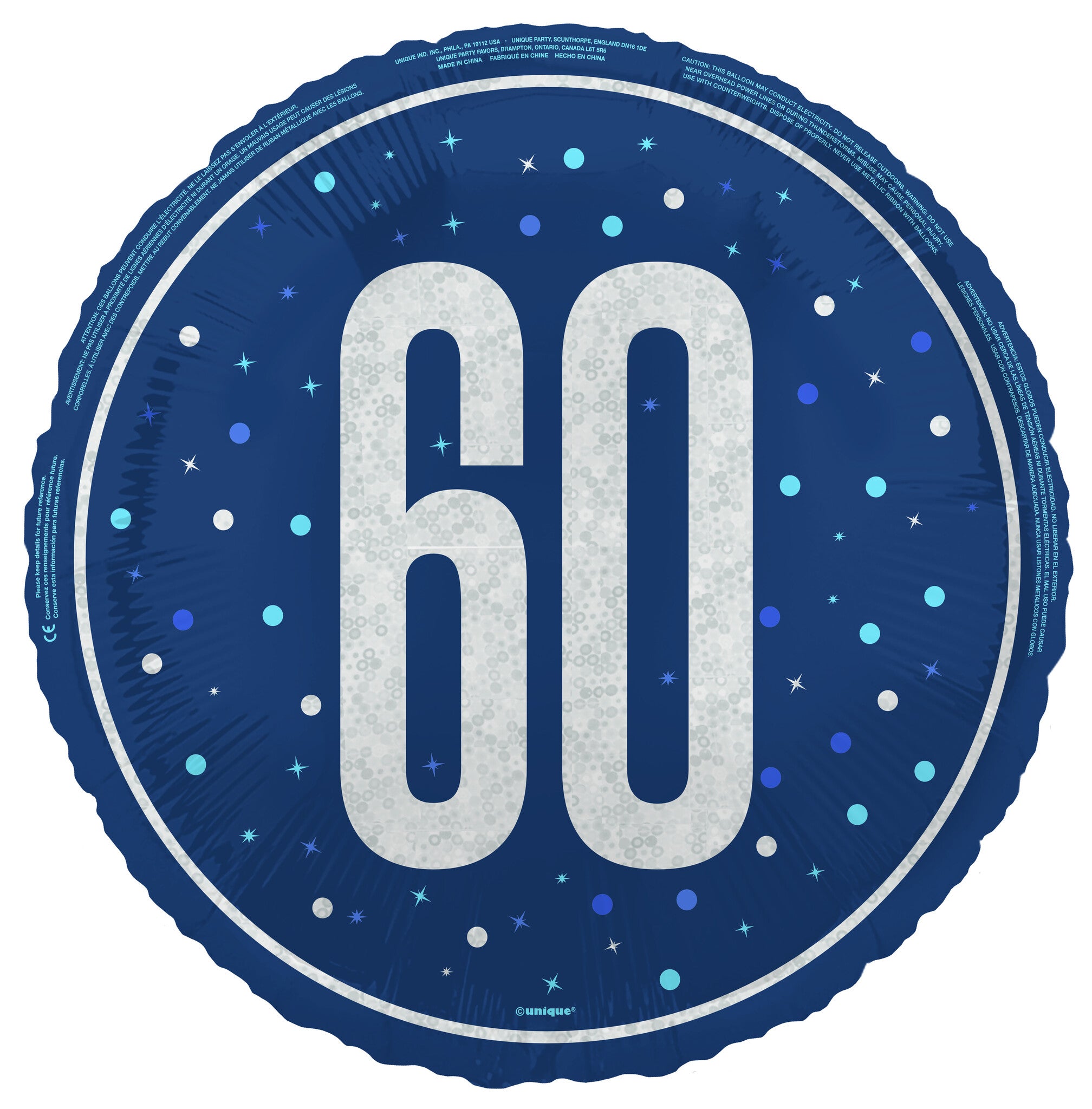 60 Jaar Helium Ballon Blauw Leeg 45cm