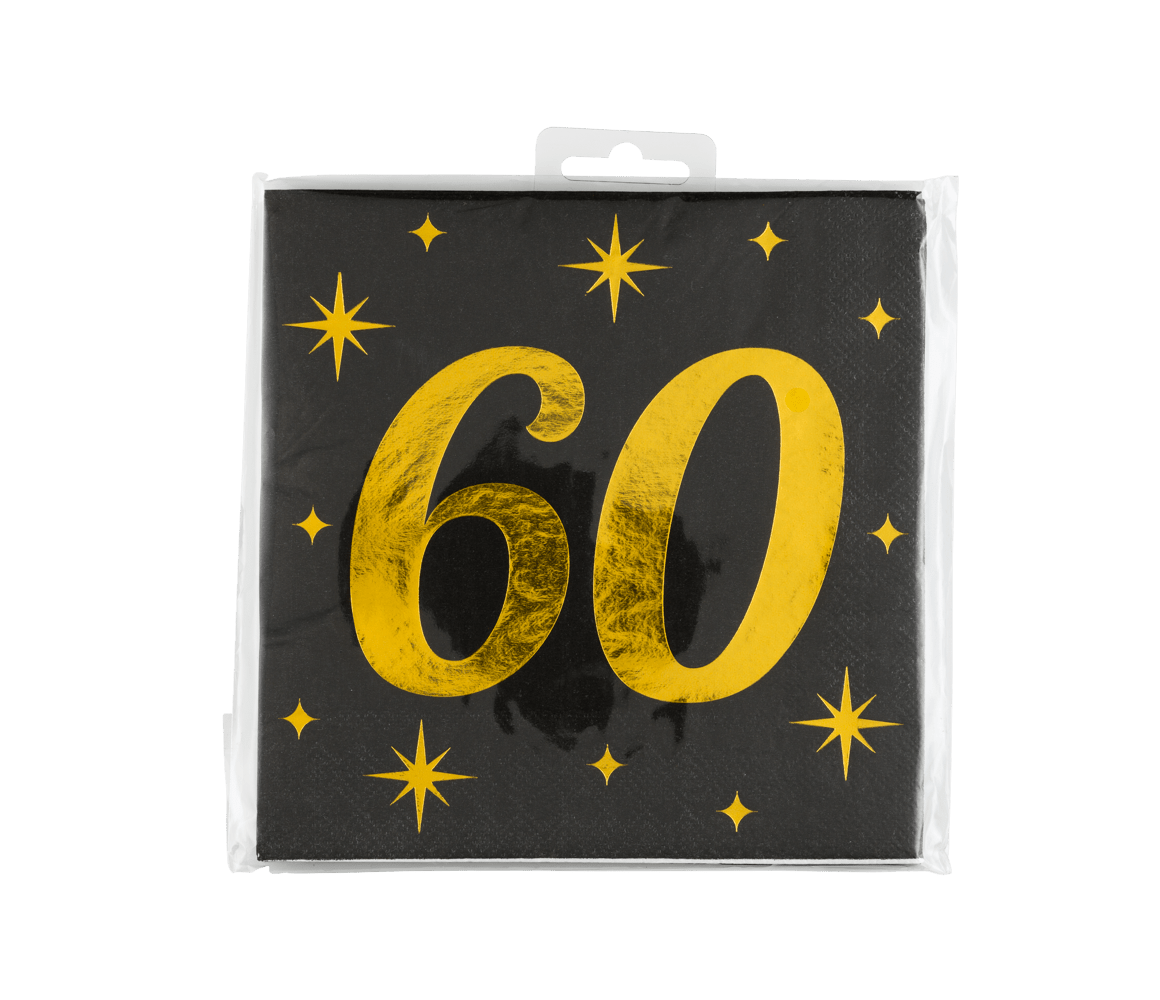 60 Jaar Servetten Zwart Goud 19cm 16st