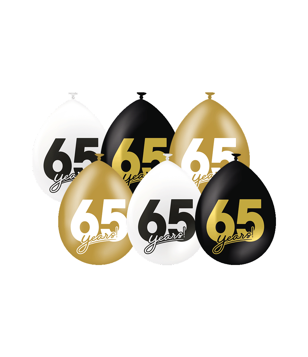 De Celebration! balloons - 65 zijn de perfecte ballonnen om een feestje voor een 65-jarige leuk aan te kleden! Deze ballonnen vallen op door het onderscheidende design en zijn perfect te combineren met de paper flags uit dezelfde reeks. De Celebration! balloons zitten per 6 in een zakje.