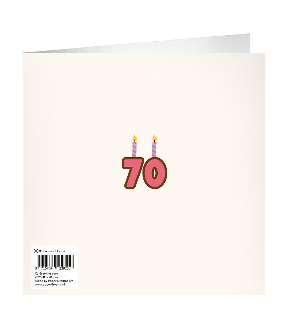 XL Greeting cards - 70 jaar is de perfecte kaart om te versturen als er iemand 70 wordt. Niet alleen het leuke design zal opvallen bij de ontvanger, ook de grote afmeting van ongeveer 23 x 23 centimeter is gewoon niet te missen!