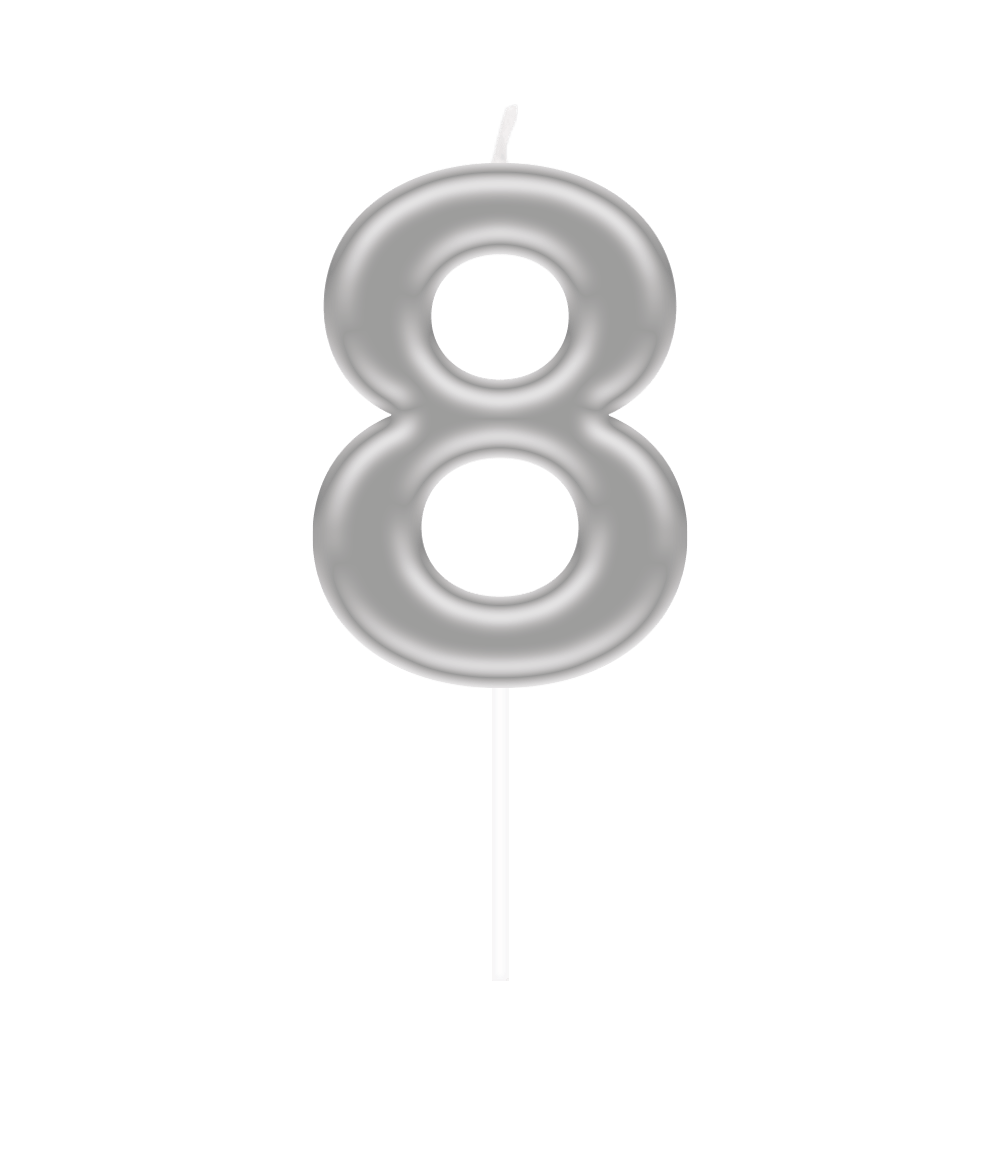 Vier elke mijlpaal stijlvol met deze zilveren cijferkaars “8”. Perfect voor het aangeven van leeftijden, jubileumgetallen of andere speciale gelegenheden. De glanzende zilveren kleur zorgt ervoor dat de kaars extra opvalt op elke taart of cupcake.