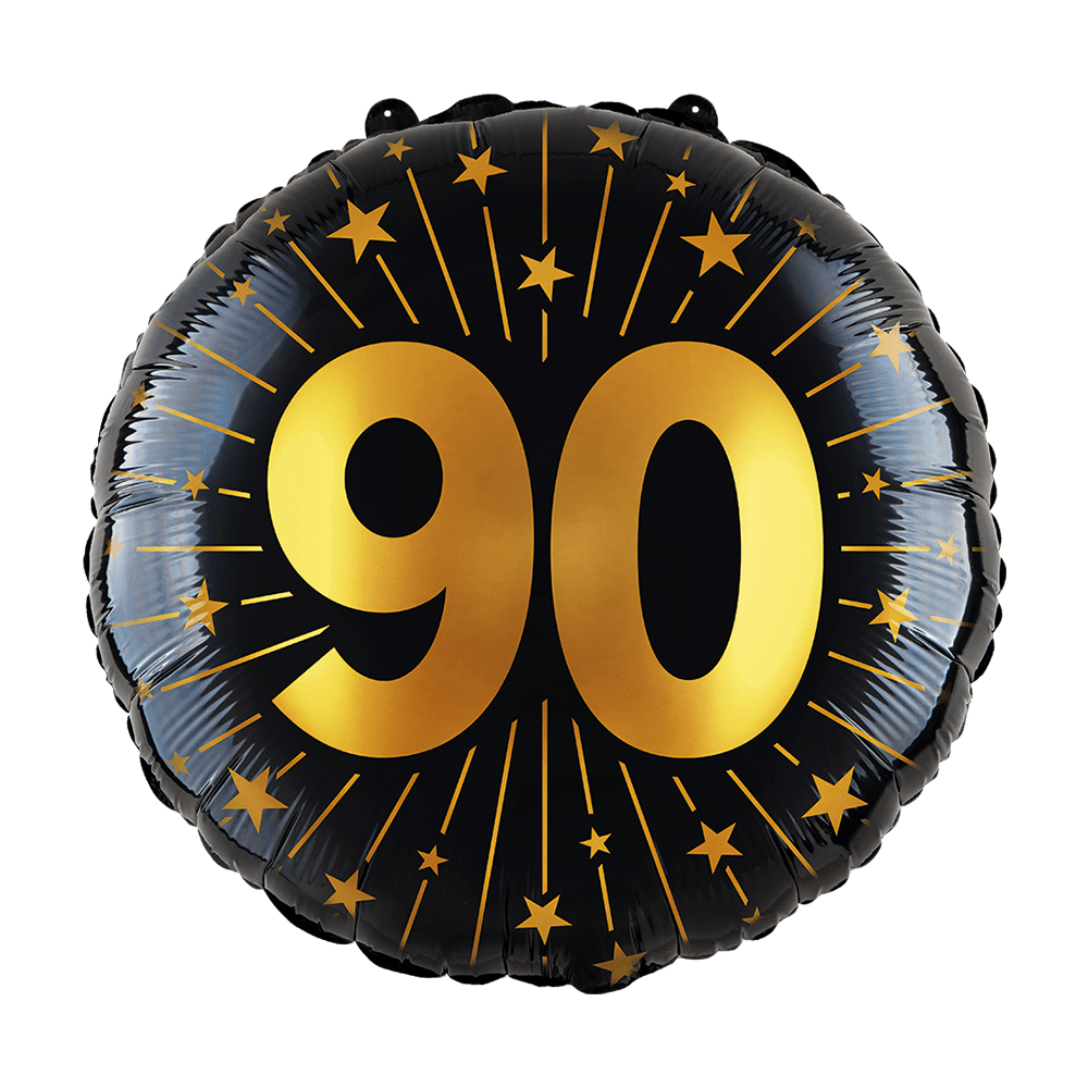 90 Jaar Helium Ballon Zwart Goud Leeg 45cm