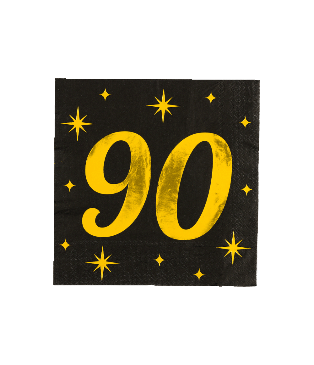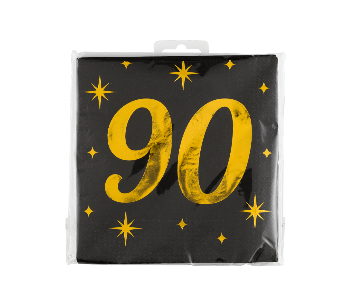 90 Jaar Servetten Zwart Goud 19cm 16st