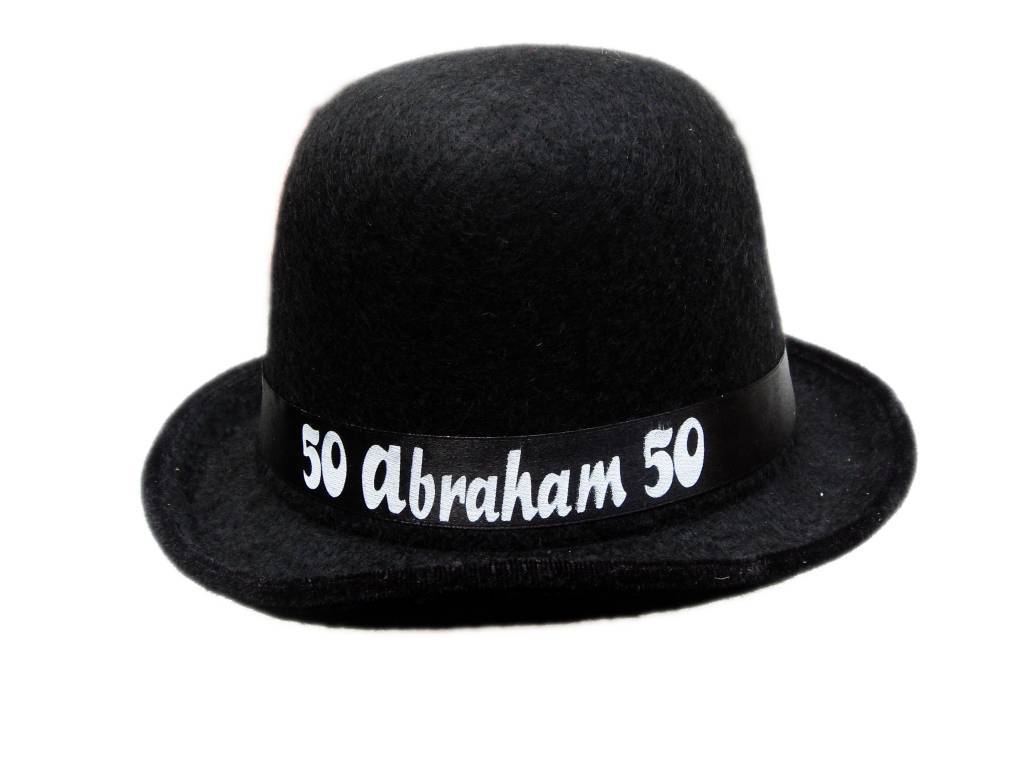 50 Jaar Abraham Bolhoed. Inhoud: 1 hoed, kleur: Zwart. Bijvoorbeeld te gebruiken tijdens de volgende feestgelegenheid/feestgelegenheden: Carnaval, Themafeest, Halloween. Deze hoed is 25 cm breed en 13,5cm hoog. Het artikel is gemaakt van polyester.