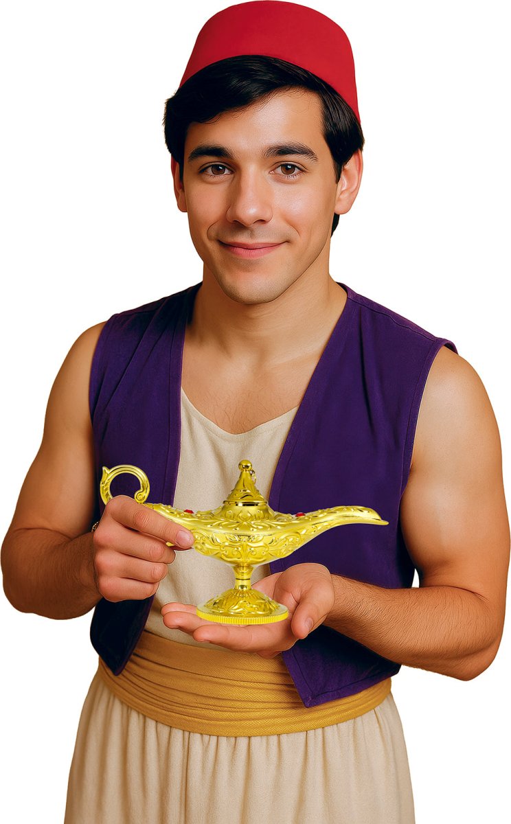 Laat je fantasie tot leven komen met deze geestlamp, geïnspireerd op de lamp van Aladdin. Gemaakt van duurzaam PVC en perfect voor verkleedpartijen, themadecoratie of als accessoire bij rollenspellen. Ideaal voor kleine en grote avonturiers die dromen over magische werelden en wensen die uitkomen.