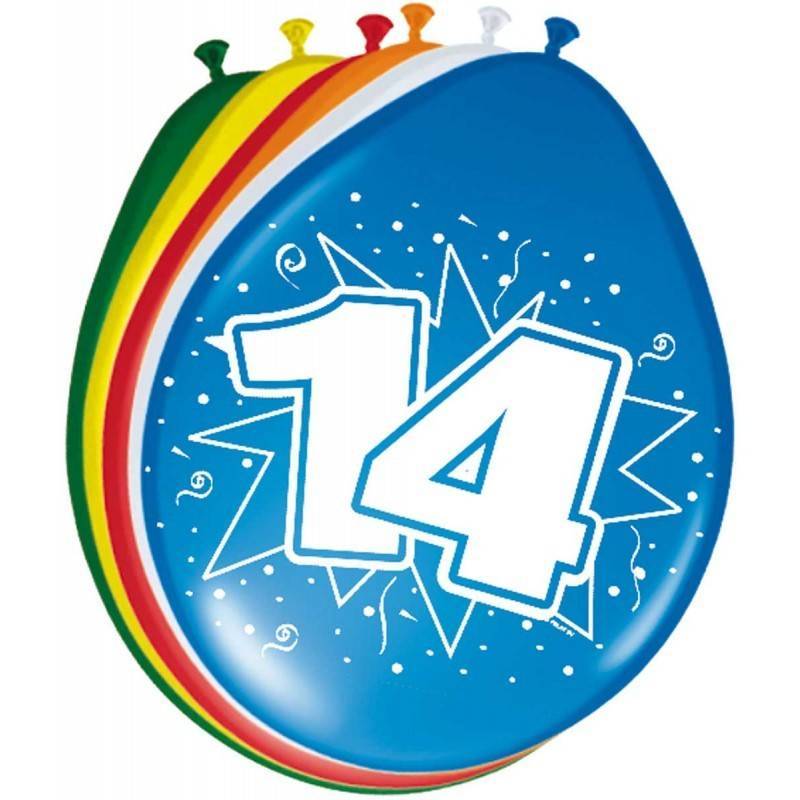 14 Jaar Ballonnen 30 cm 8 stuks. Inhoud: 8 latex ballonnen. Bijvoorbeeld te gebruiken tijdens de volgende feestgelegenheid/feestgelegenheden: verjaardag, kinderfeestje, jubileum. Elke ballon is 12 inch/30 cm. Het artikel is gemaakt van latex.