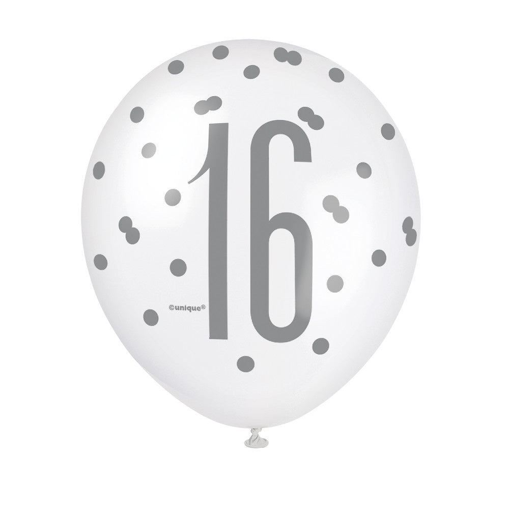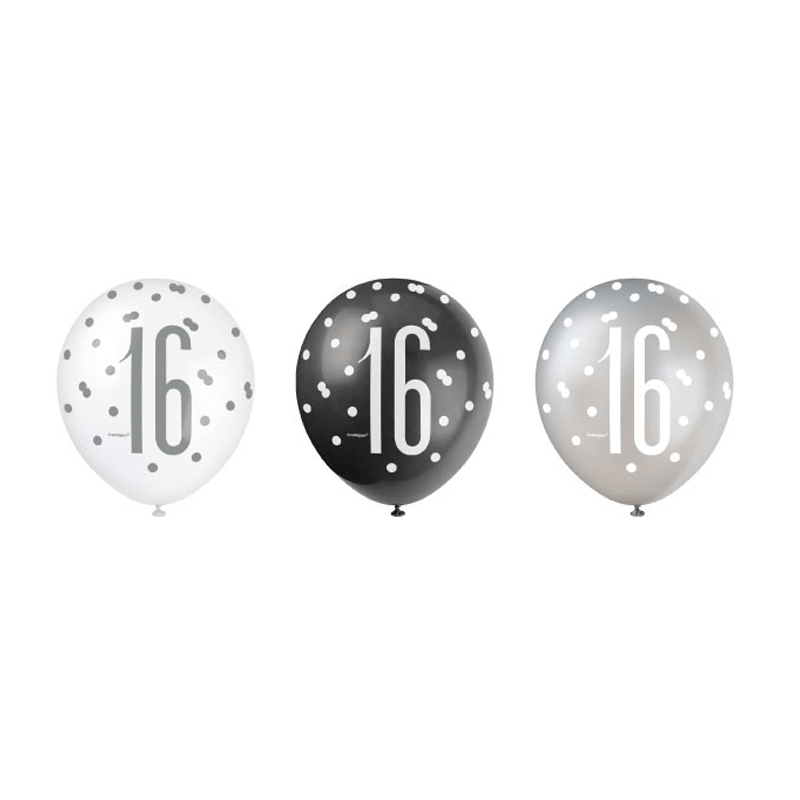 Ballonnen 16 Jaar Stippen Zwart 30cm 6st