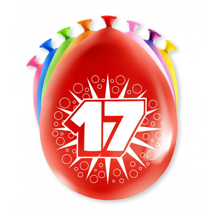 Ballonnen 17 Jaar Meerkleurig 30cm 8st