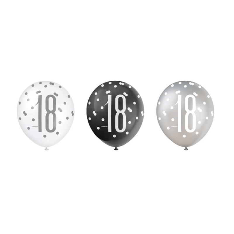 Ballonnen 18 Jaar Stippen Zwart 30cm 6st