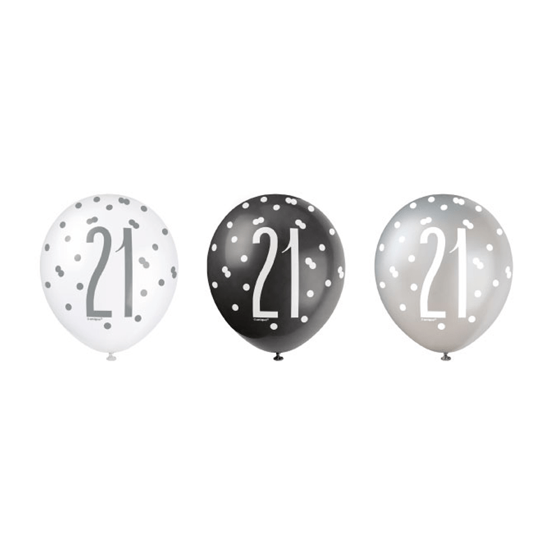 Ballonnen 21 Jaar Stippen Zwart 30cm 6st
