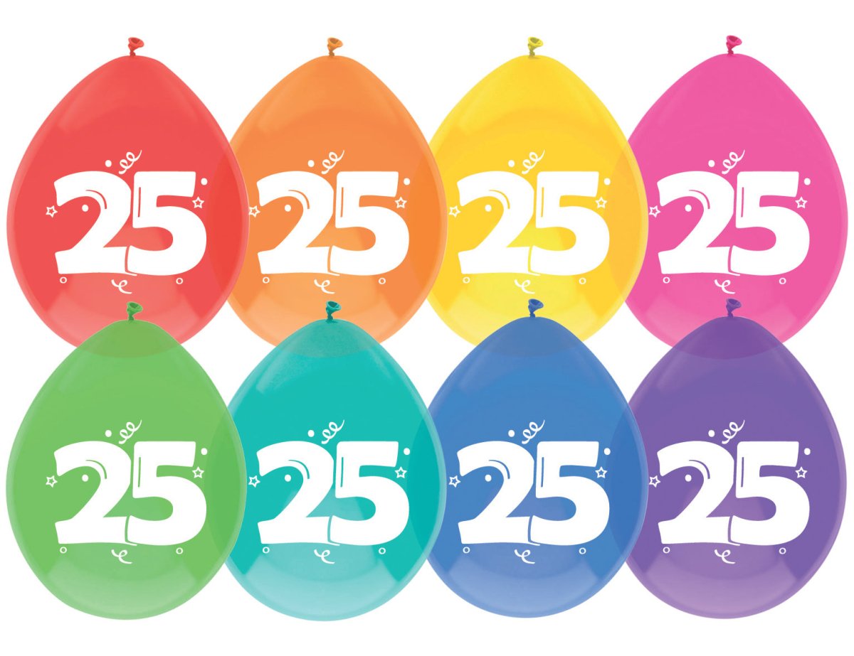 Ballonnen 25 Jaar Gekleurd 30cm 8st