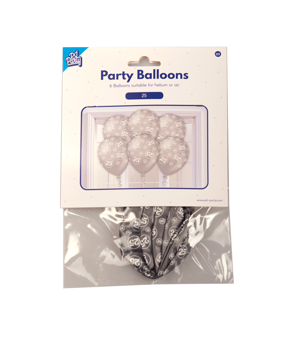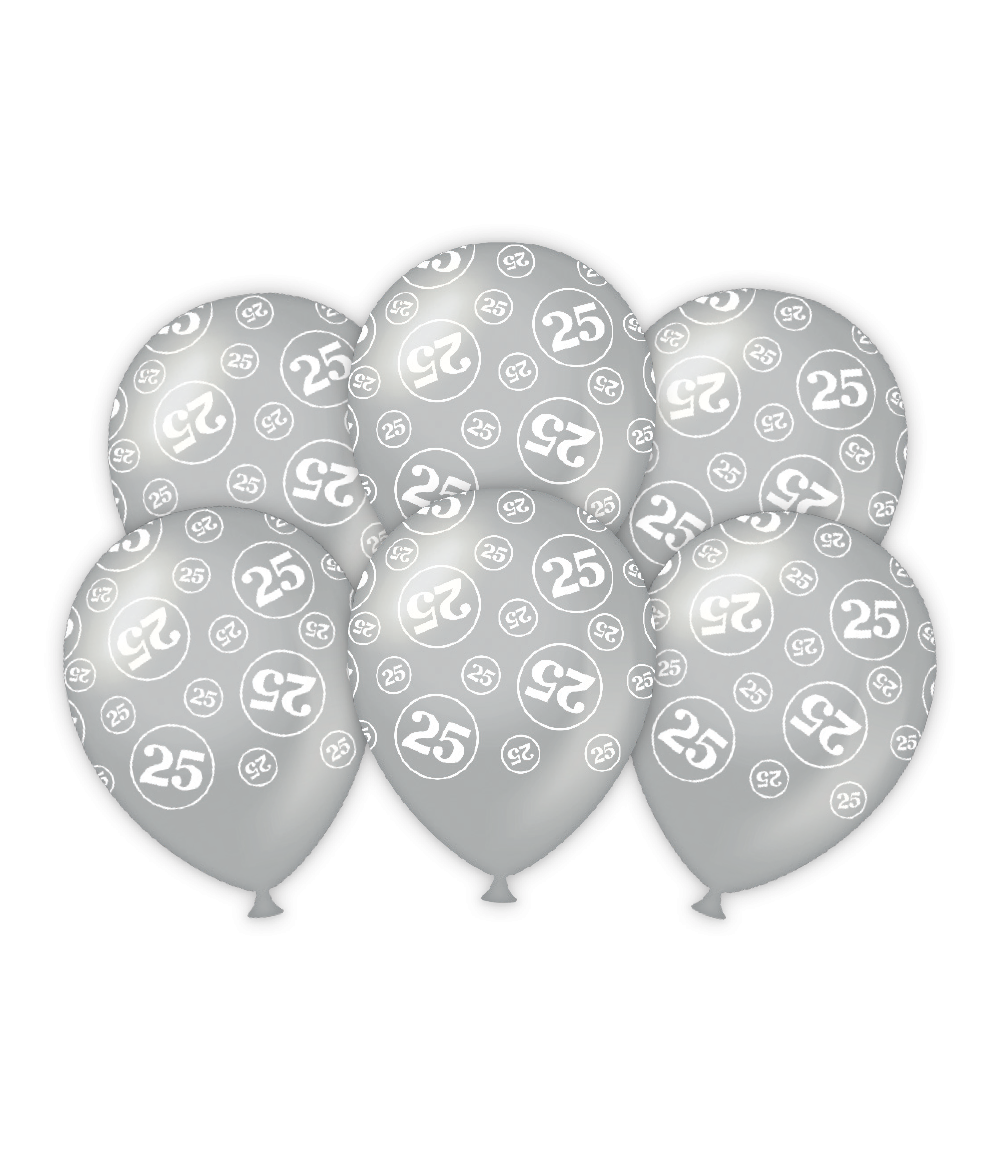 Ballonnen 25 Jaar Zilver 30cm 6st