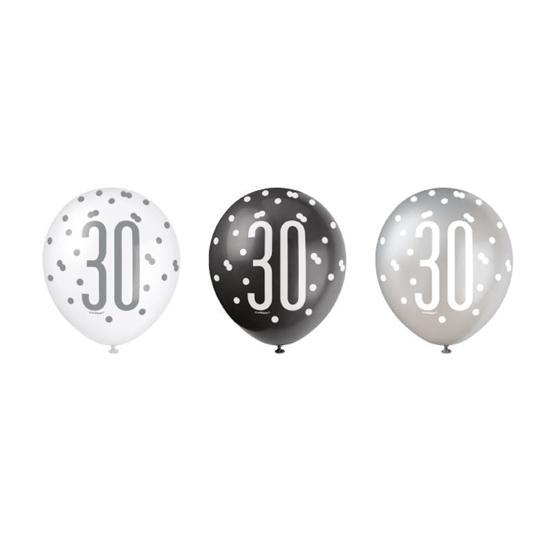 Ballonnen 30 Jaar Stippen Zwart 30cm 6st