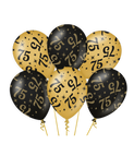 Ballonnen 75 Jaar Goud Zwart 30cm 6st