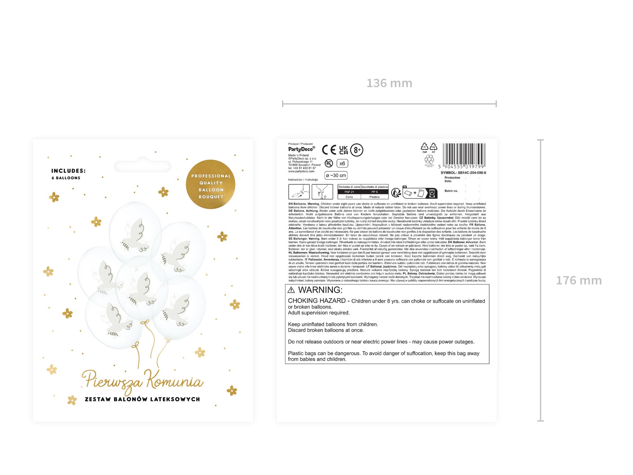 Sterke duivenballonnen, set bevat 6 ballonnen in kristalheldere kleur met een kleurrijke dubbelzijdige print, diameter ca. 30 cm.