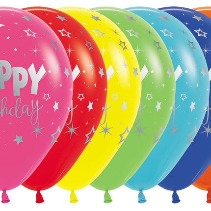 Ballonnen Happy Birthday Fantasy Metallic Ink Silver 30cm 25st