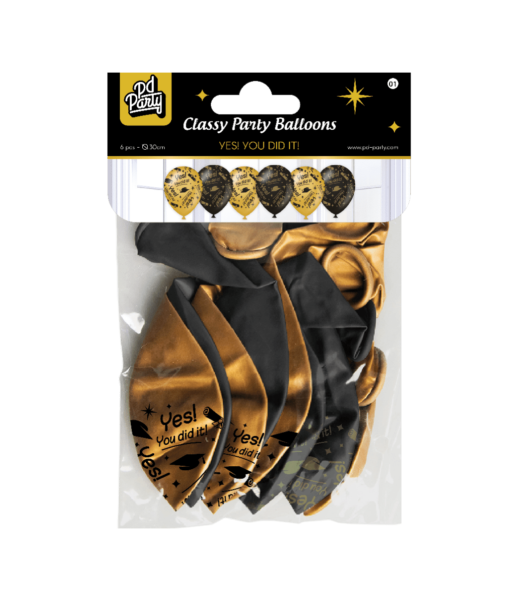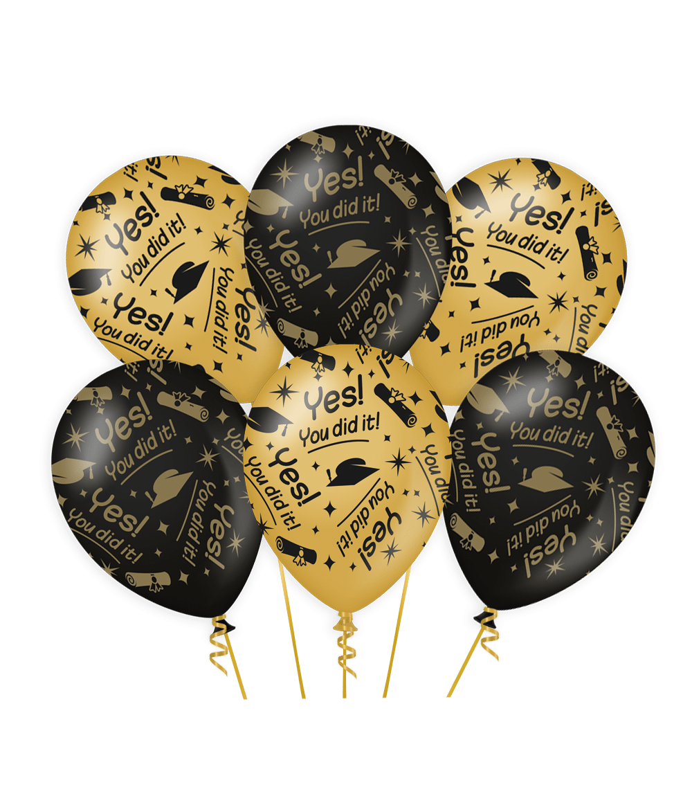 Ballonnen You Did It Goud Zwart 30cm 6st