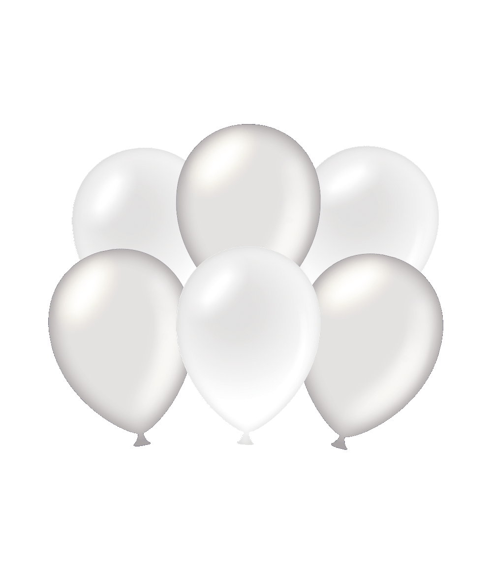 Ballonnen Zilver/Wit Metallic 30cm 6st