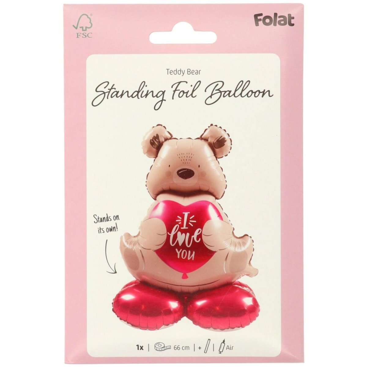 Liefde met een extra knuffel. Staande Folieballon, Ombre Love, Bruine beer "I love you", 66 cm. Inhoud: 1 folieballon. Bijvoorbeeld te gebruiken tijdens de volgende feestgelegenheid/feestgelegenheden: Valentijnsdag, Huwelijk, Jubileum. Een lieve staande folieballon om een geliefde te zeggen wat je voelt. De schattige bruine beer houdt een roze hart vast met de tekst "I love you". De ballon staat op een roze basis. Dit artikel is gemaakt van folie.