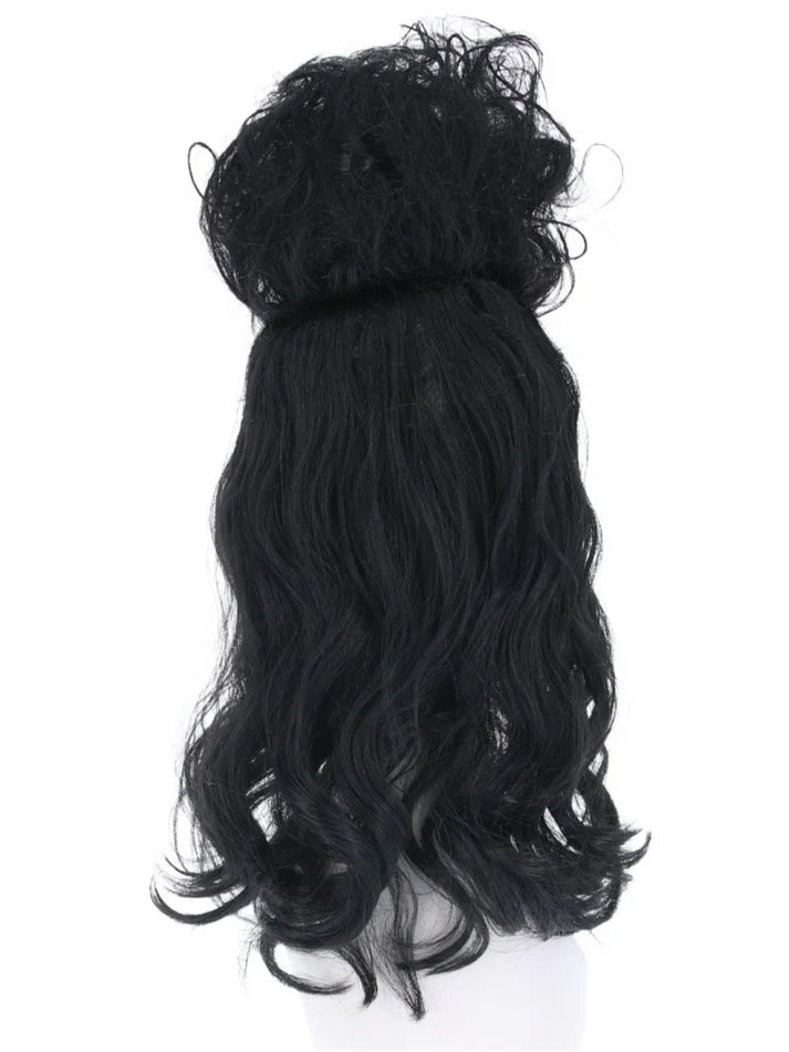 Deze halflange Lydia pruik met pony geeft je kostuum een direct herkenbare Beetlejuice-uitstraling. Comfortabel en eenvoudig te dragen voor een opvallende en speelse look.