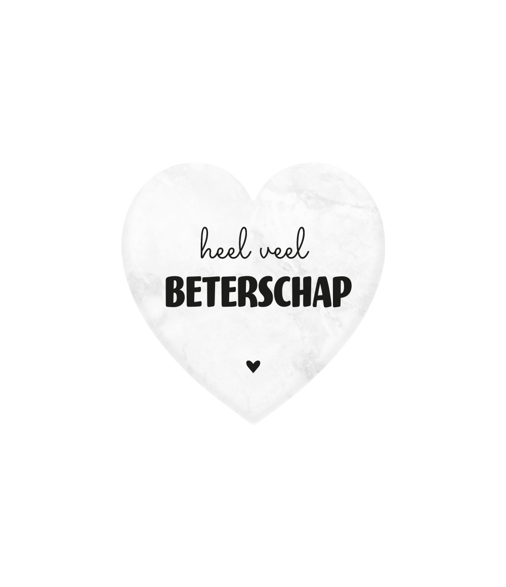 Haal een stukje liefde binnen met onze marmeren hartjes met de tekst "Beterschap". Dit stijlvolle en tijdloze geschenkartikel is perfect om iemand beterschap te wensen. Het hartje is gemaakt van marmer, wat zorgt voor een luxe uitstraling en het tevens een duurzaam artikel maakt.