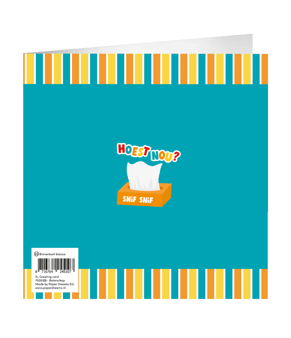 XL Greeting cards - Beterschap is de perfecte kaart om te versturen als je iemand beterschap wil wensen. Niet alleen het leuke design zal opvallen bij de ontvanger, ook de grote afmeting van ongeveer 23 x 23 centimeter is gewoon niet te missen!