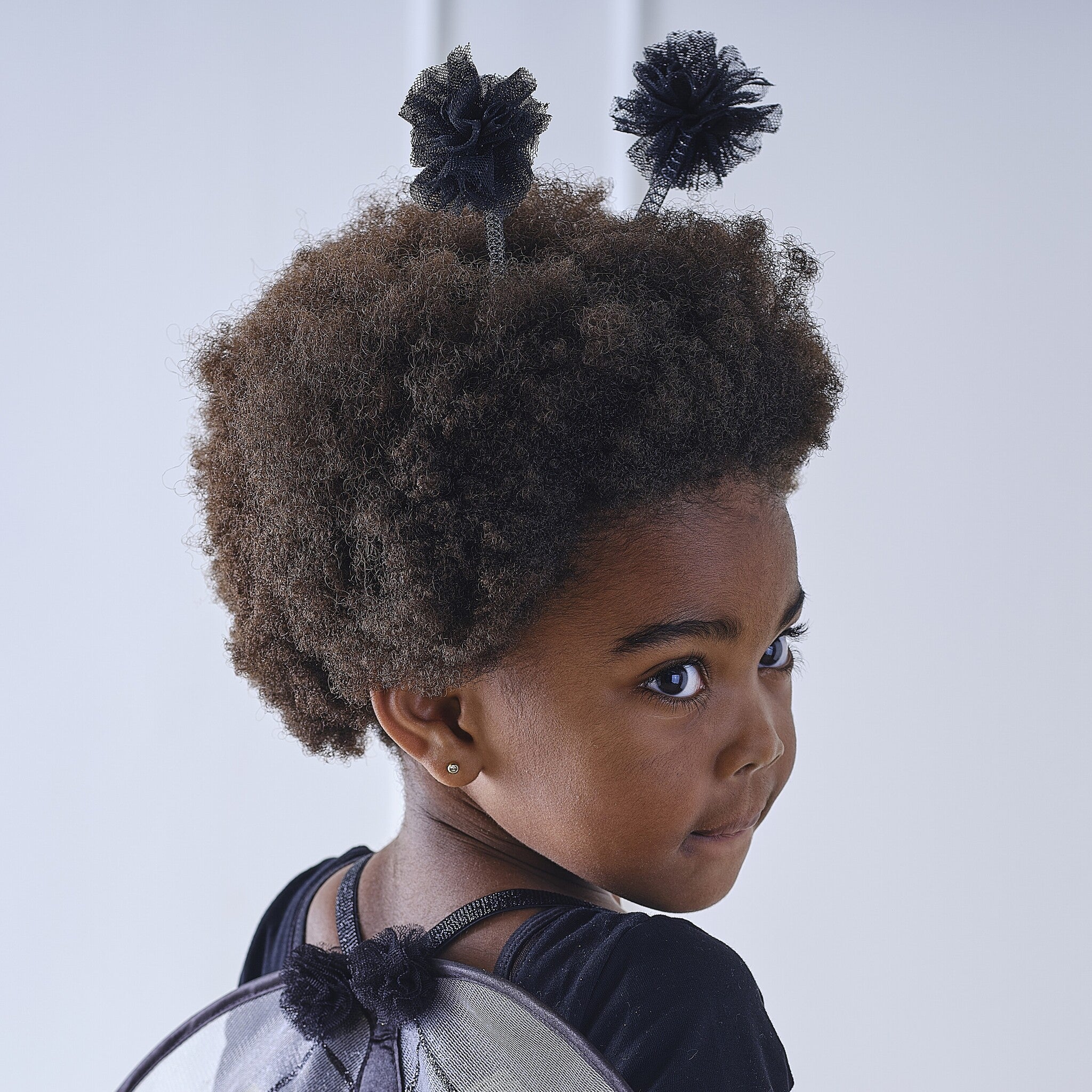 Deze antennes zijn gemaakt van zwarte tule, met pompondetails.